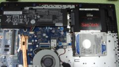 やっとHDDまで手が届きました。これを取り外して、新品のSSDにデータを移し替えます。